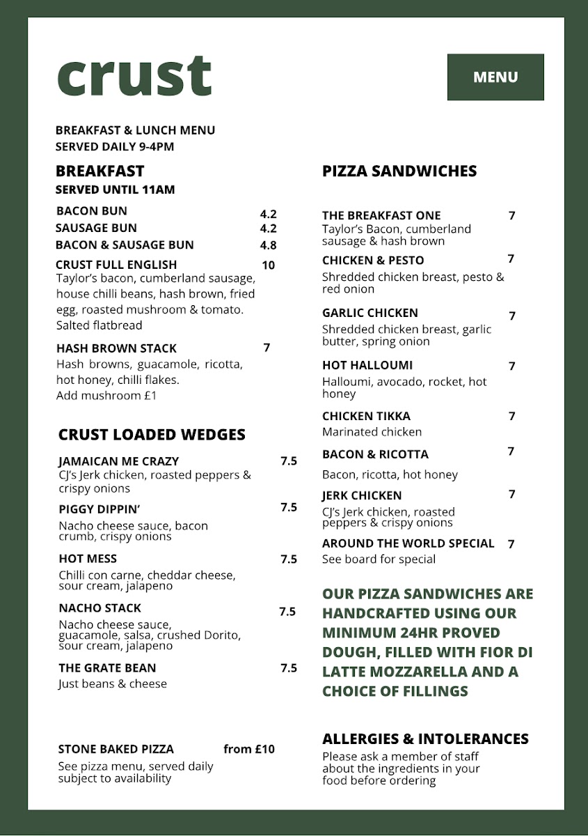 Introducing the menu at Crust is a delightful experience that showcases the heart of its culinary offerings. Located at 3 Ridley Mews in Stockton-on-Tees, Crust specializes in hearty breakfasts and mouth-watering pizzas, all crafted with care. Guests can start their day with options like the Bacon Bun (£4.20) or indulge in the full English breakfast (£10.00), setting a welcoming tone.